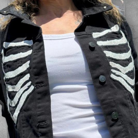 Punk Style Rib Cage Denim Battle Jacket Vest