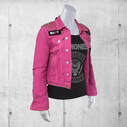 Women's Pink Enemy of the State Punk Studded Battle Jacket