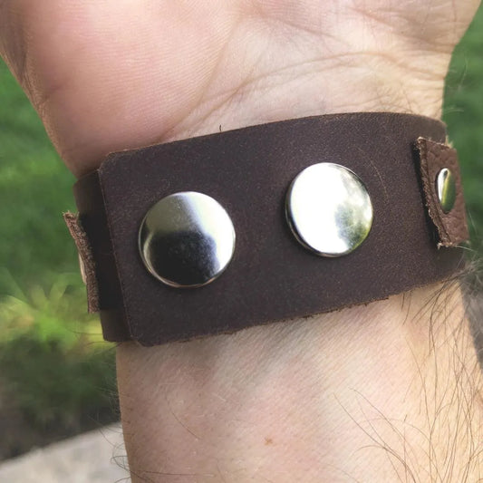Men’s Adjustable Casual Steel Ring Brown Leather Cuff