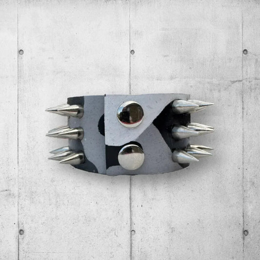 Punk Rocker Black Urban Camo Designed Spiked Leather Cuff