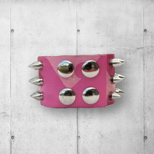 Punk Rocker Pink Urban Camo Designed Spiked Leather Cuff