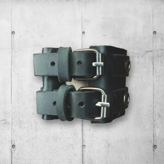Unisex Genuine Black Leather Three Strap Punk Cuff